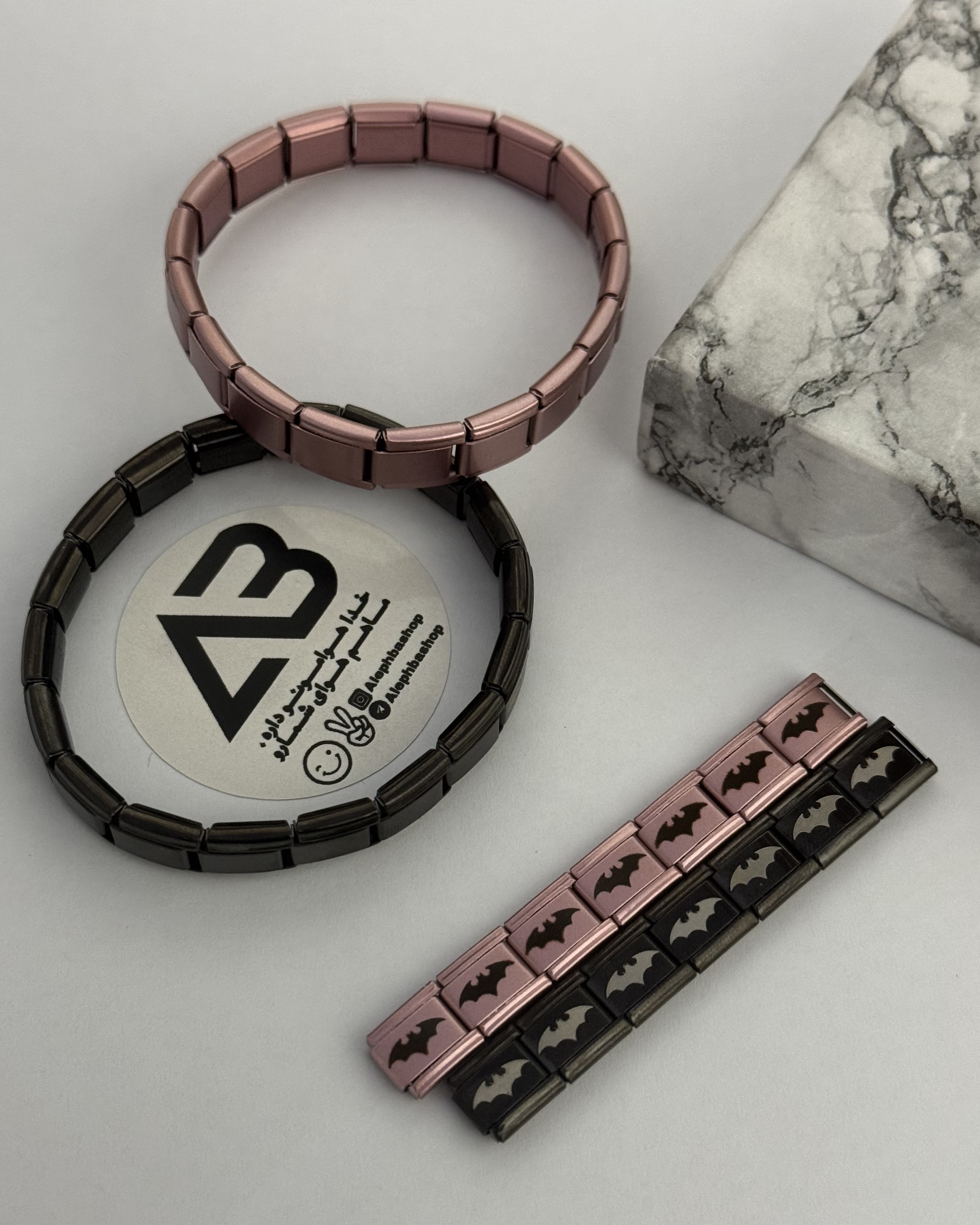 ست دستبند چارم ایتالیایی بتمن صورتی و بتمن مشکی🦇